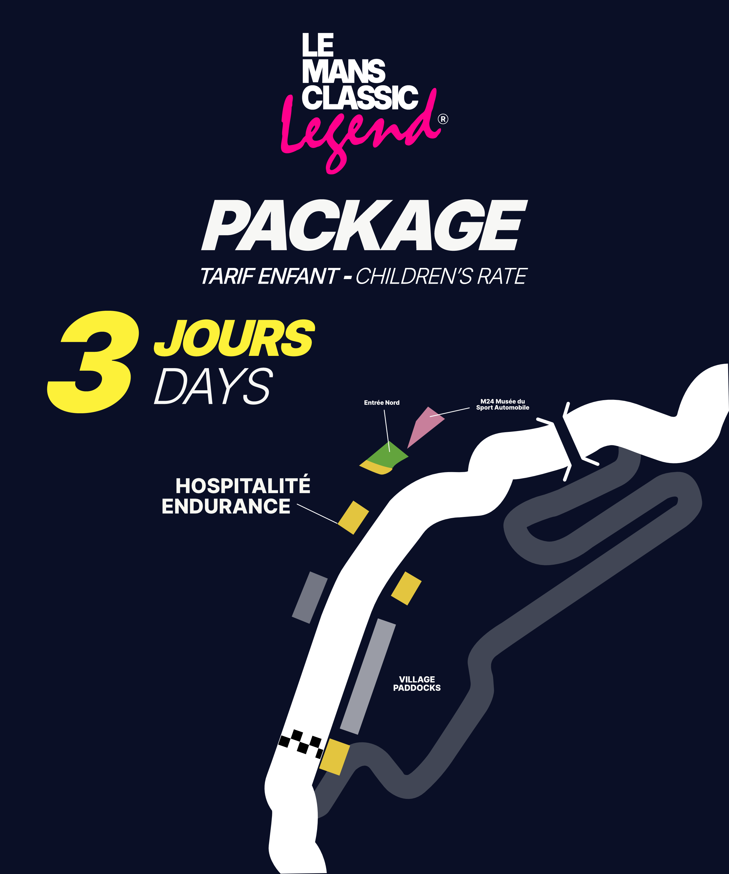Le Mans Classic Legend brings back the spirit and style of the 1970s to the 2000s, an era defined by character, innovation and automotive culture. With the Endurance Package, you step behind the scenes and experience the event from one of the circuit’s most iconic viewpoints: a private grandstand offering a striking perspective over the Dunlop Curve.