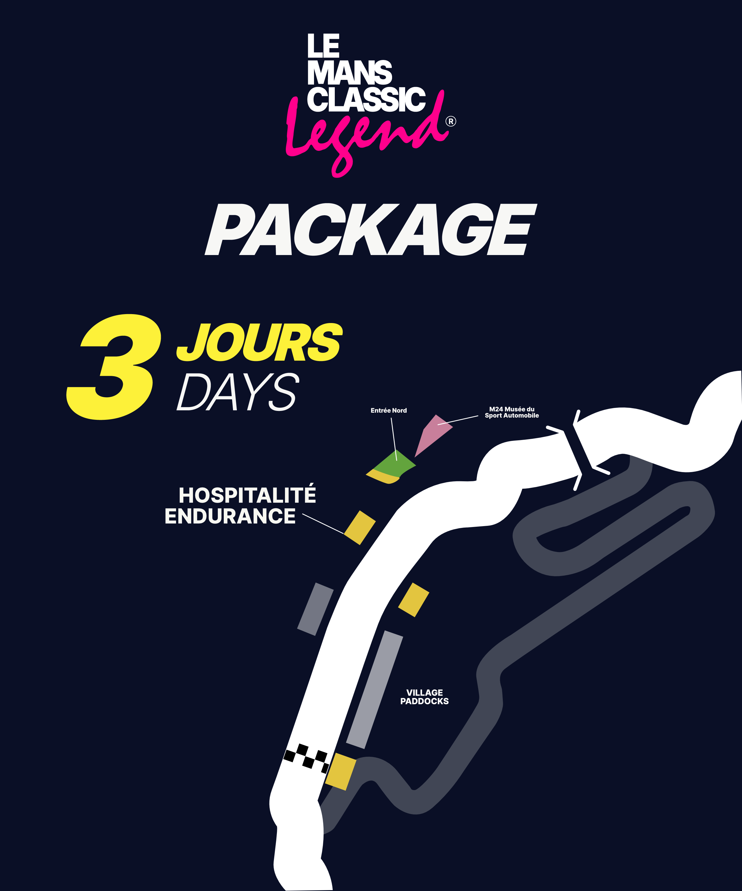 Le Mans Classic Legend brings back the spirit and style of the 1970s to the 2000s, an era defined by character, innovation and automotive culture. With the Endurance Package, you step behind the scenes and experience the event from one of the circuit’s most iconic viewpoints: a private grandstand offering a striking perspective over the Dunlop Curve.
