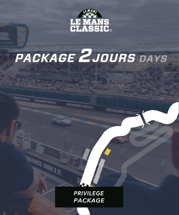 Une place dans la tribune privée qui offre une vue exceptionnelle sur la piste vous sera réservée tout au long du week-end. Chaque détail a été pensé pour sublimer votre passage au Mans Classic. Faites partie de ceux qui vivent cet événement d'une façon unique et privilégiée.